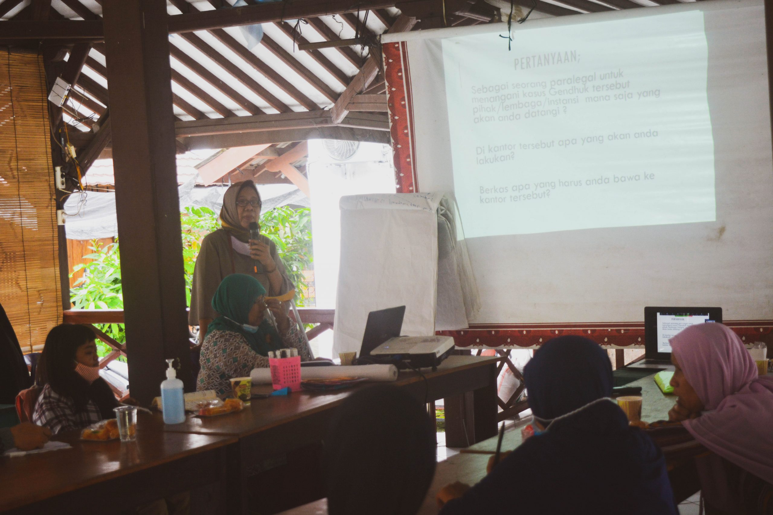 Melengkapi Supriyati, Tari dari komunitas paraplegia mengingatkan bahwa paralegal tetap harus memberikan waktu terlebih dahulu bagi penyintas untuk bisa menerangkan apa yang dialami. “Tapi itu enggak akan mudah. Mau ke aparat pun banyak yang enggak berani, karena takut,” jelasnya.