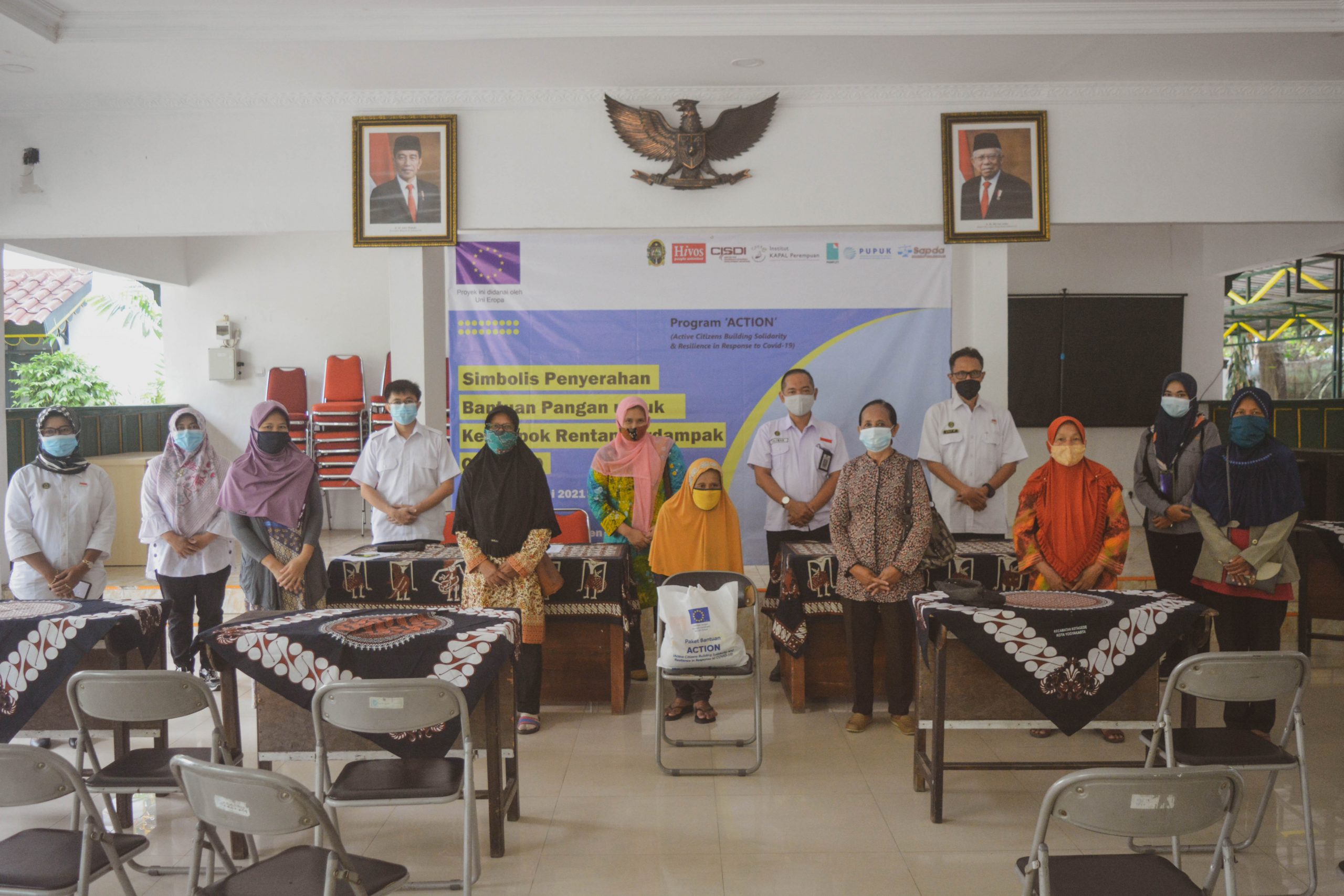 Distribusi paket bantuan pangan ini merupakan bagian dari pelaksanaan Program Warga Aktif Membangun Solidaritas dan Ketahanan dalam Menghadapi COVID-19 atau Active Citizens Building Solidarity and Resilience in Response to COVID-19 (ACTION) yang sepenuhnya didanai oleh Uni Eropa. Program ACTION diinisiasi dan dikoordinir oleh Hivos dan diimplementasikan oleh SAPDA, Center for Indonesia’s Strategic Development Initiatives (CISDI), Perkumpulan untuk Peningkatan Usaha Kecil (PUPUK), Institut KAPAL Perempuan, dan Pamflet Generasi.