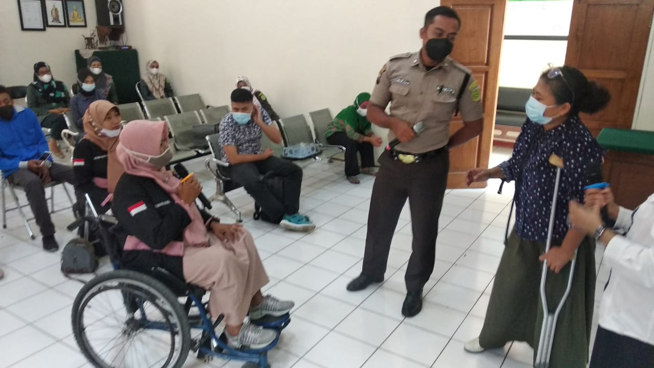 Selain itu, asistensi juga mengagendakan pelatihan etika berinteraksi dengan penyandang disabilitas, utamanya bagi jajaran aparatur PN Blora yang bertugas di garis terdepan layanan sepertu petugas PTSP dan keamanan. SAPDA mengajak langsung mereka untuk melakukan simulasi pelayanan terhadap penyandang disabilitas.